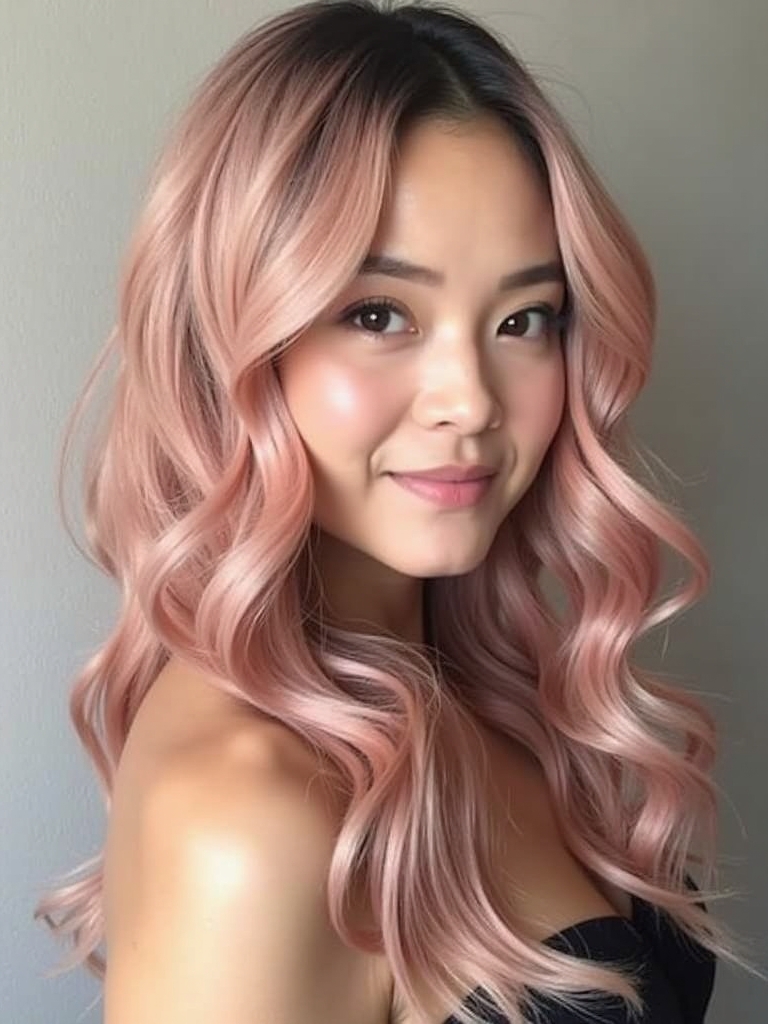 Ideas of Copper Peach Hair Color for Long Layered Waves