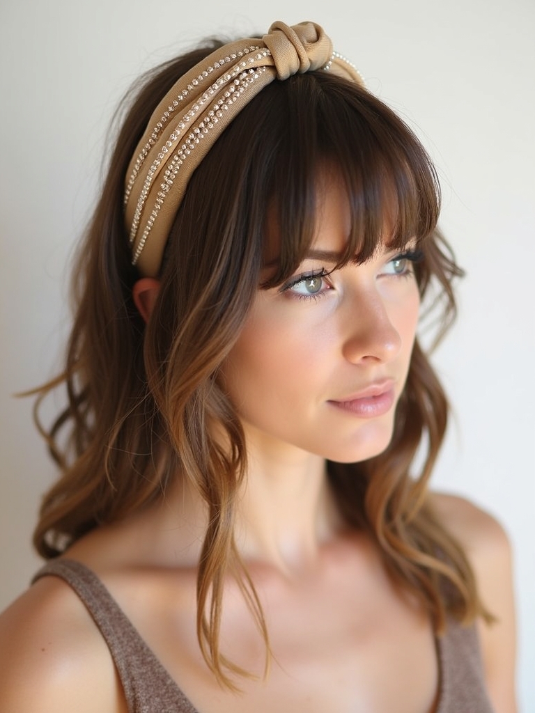 A headband is a classic accessory that can be used to style your hair and keep your wispy bangs for women in place. Choose a headband that complements your outfit and personal style. You can wear the headband with your hair down or in an updo. Experiment with different types of headbands, such as fabric headbands, beaded headbands, or elastic headbands.