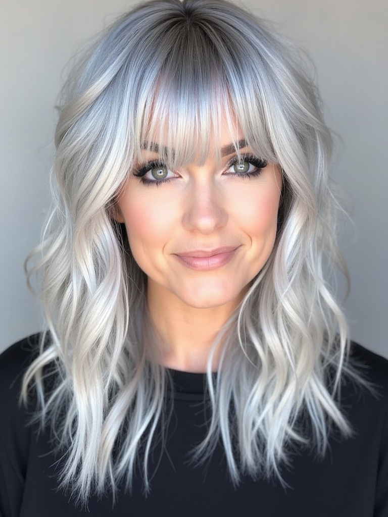 Wispy Bangs for Women: Silver Hair with Wispy Bangs