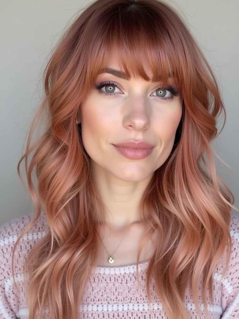 Wispy Bangs for Women: Rose Gold Hair with Wispy Bangs